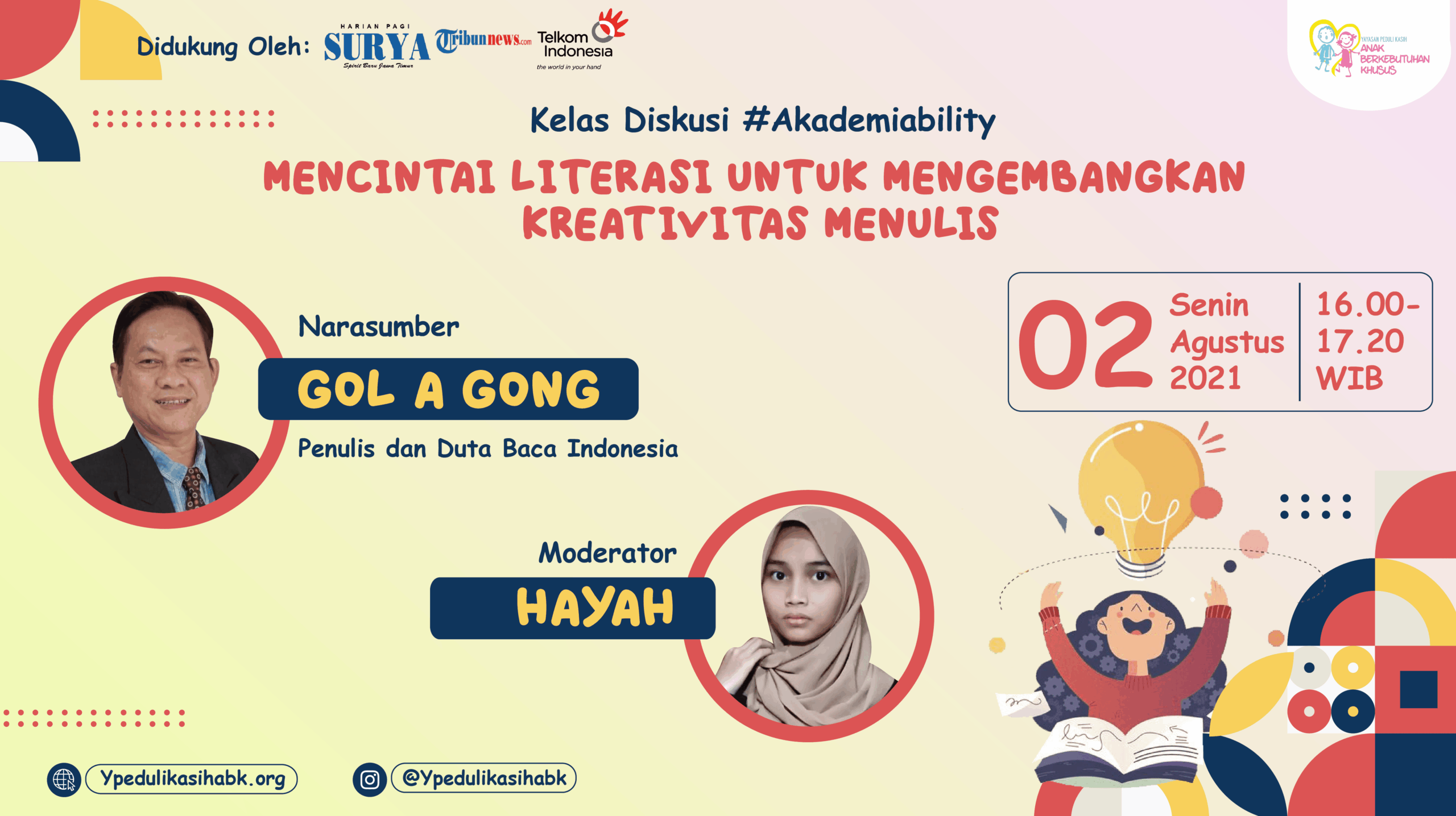 “Tubuh boleh cacat, tapi semangat untuk maju tetap menyala!” Itulah yang dilontarkan oleh Gol A Gong, Duta Baca Indonesia setelah