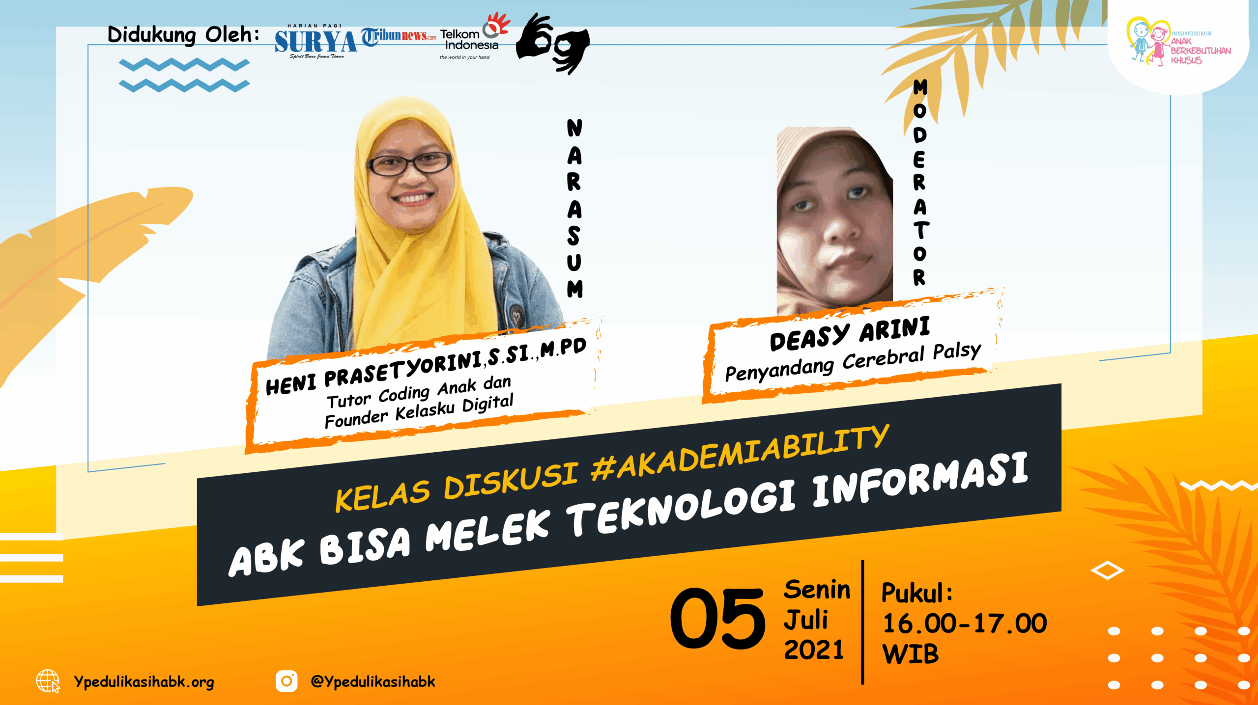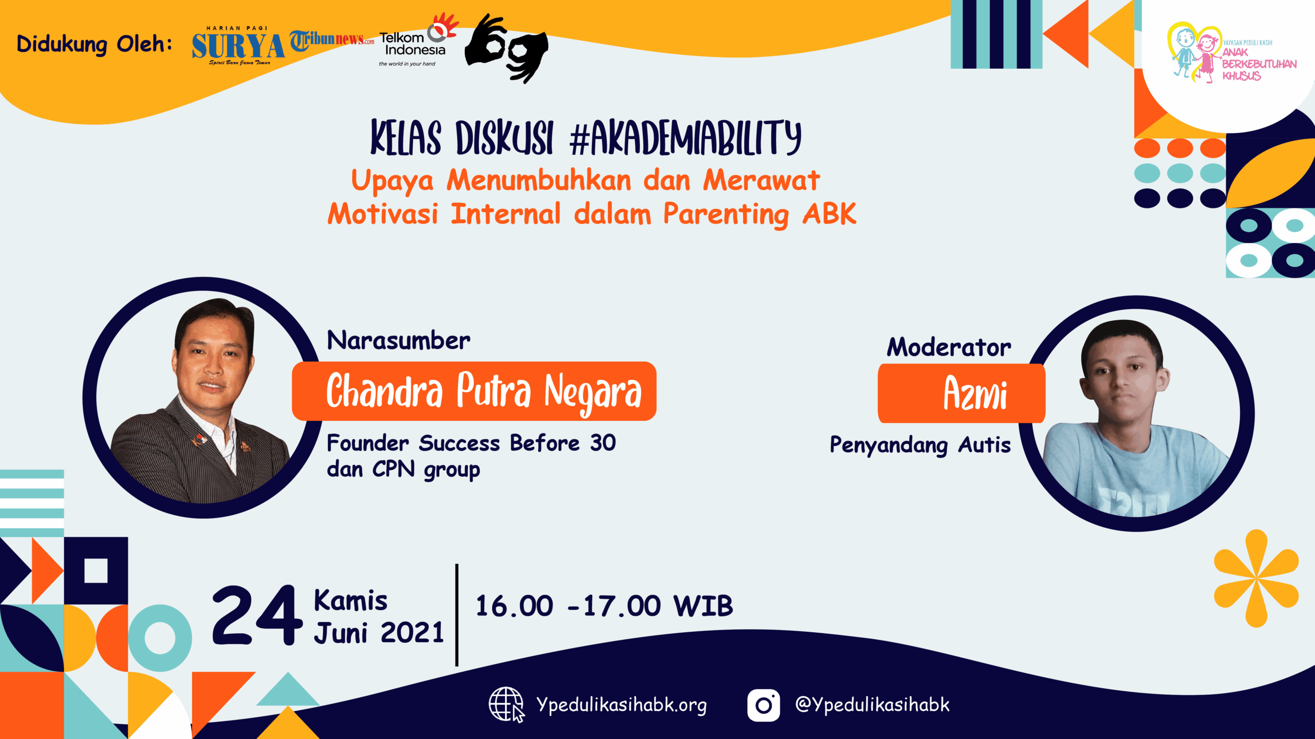 “Banyak orang sukses dan hebat dari ABK (Anak Berkebutuhan Khusus).” Begitulah yang disampaikan Bapak Syarif Thayib Pada saat kelas diskusi